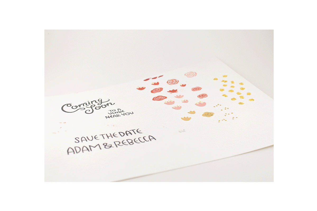 I had the honor of designing a wedding suite for one of my closest friends. The challenge was to create a look tying together both her spring garden and movie themes. All the personalized illustrations and typography throughout began as hand-painted art. The Save the Date featured custom portraits of the bride and groom, and the invitations were completed with an illustrated map of the venue on the back. The rest of the suite was inspired by movie ephemera such as film strips, tickets, and scene clapboards.